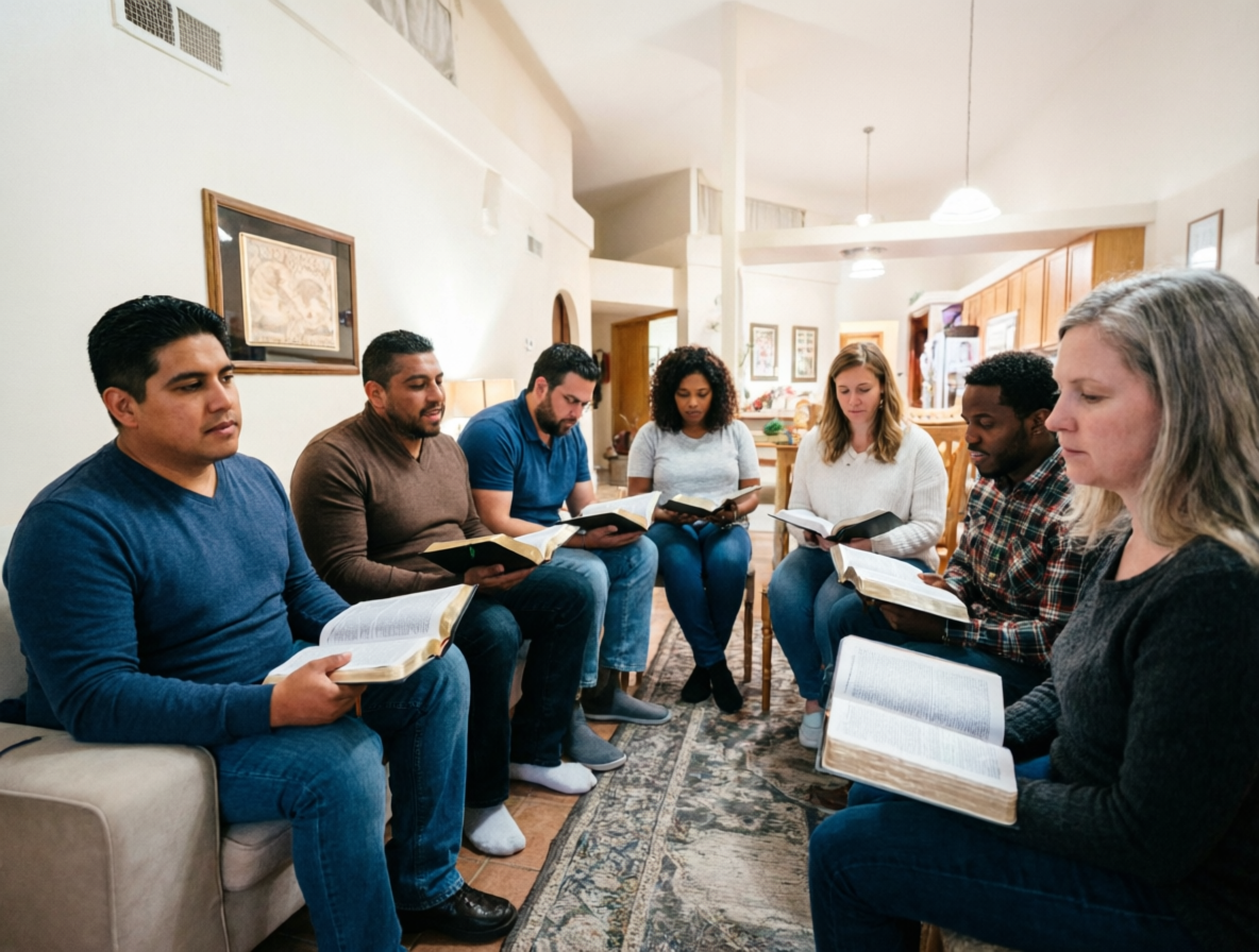 Hey, we gather family-style in our living room, grab a seat on the couch, kick back with coffee, and let's go after Jesus together! Cozy vibes, real talk, life change.